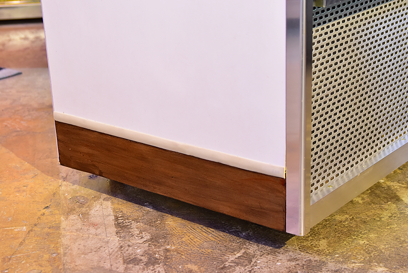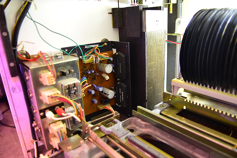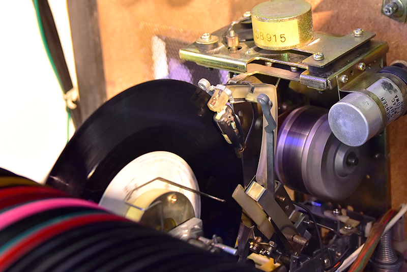 こちらの1台は、セレクトメカニズムの分解メンテナンスやレコード針の新品交換(左右)、アンプ整備等を施し当時の音を蘇らせました。さらに、ダメージを受けやすい側面ボトムにはウォールナットの腰壁板を加工装備し高級感を演出いたしました。