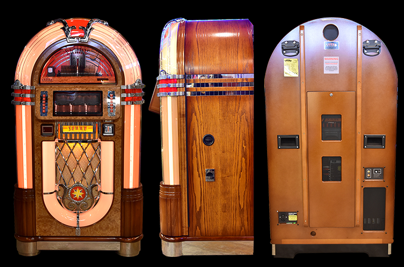 - 1940年代ゴールデンエイジのジュークボックスデザインを忠実に再現したウッドキャビネットは、全てイギリス国内で職人によるハンドメイドで製作されており、アルミのクロームキャスティングやスピーカーグリルなど、こだわりのルックスディテールを誇ります。