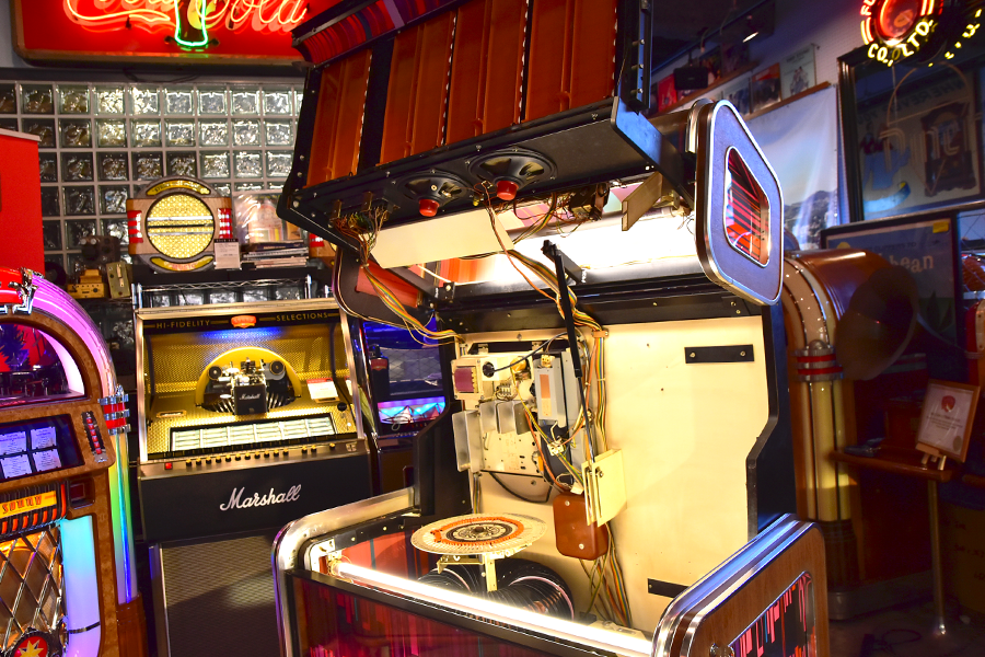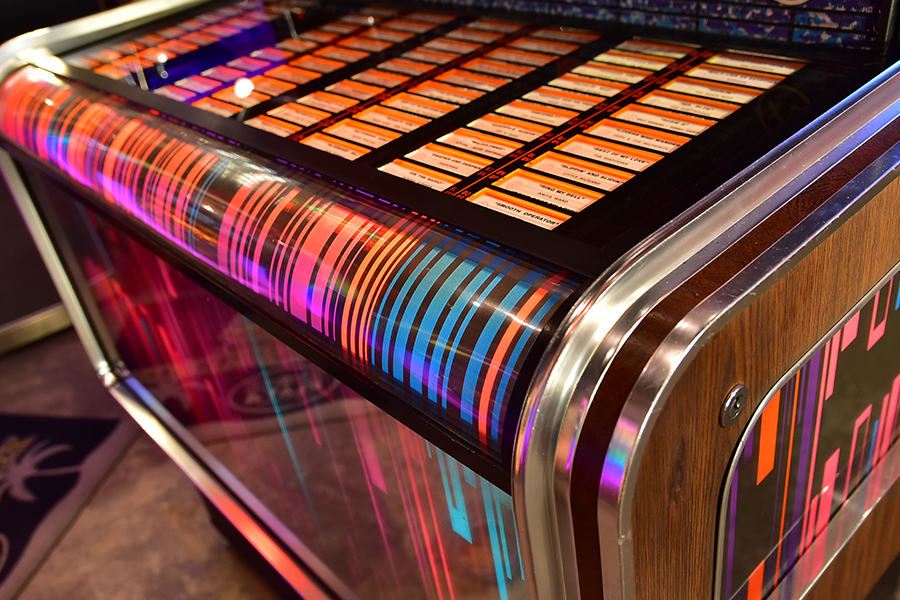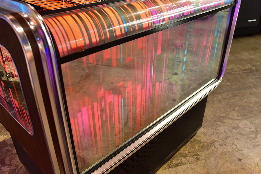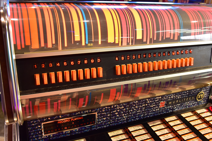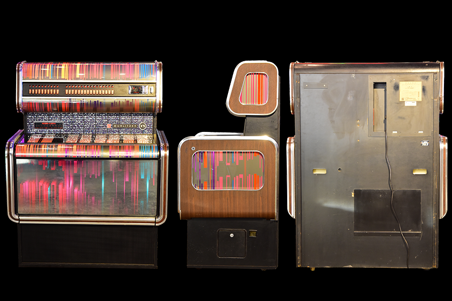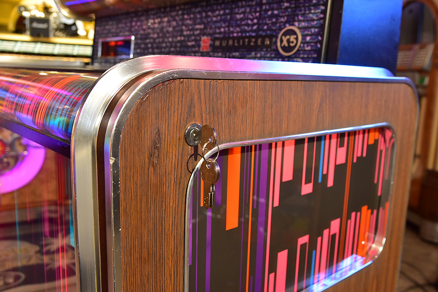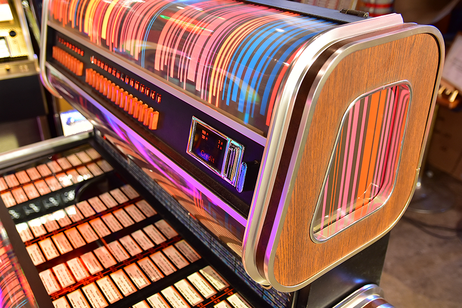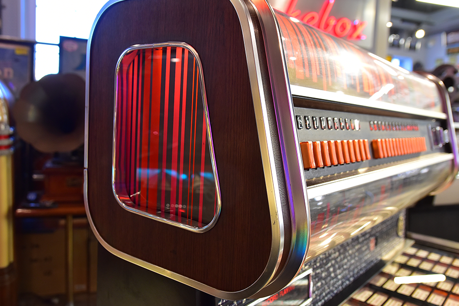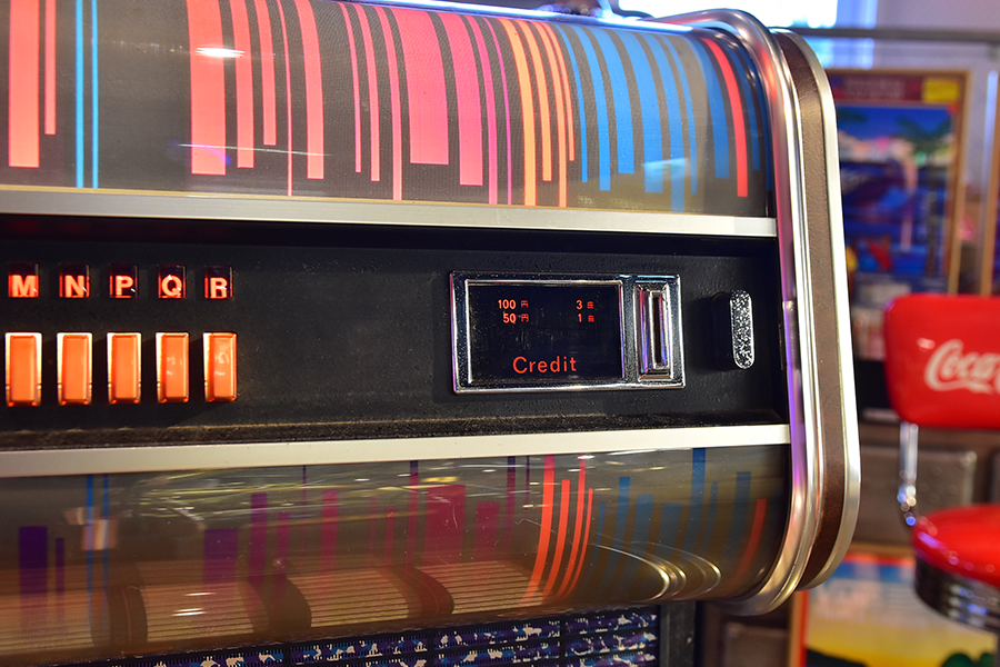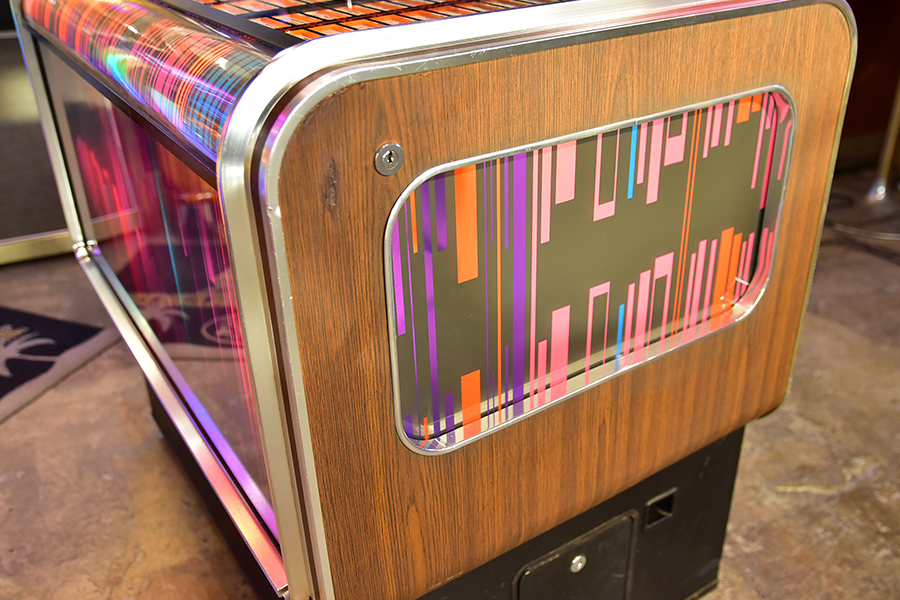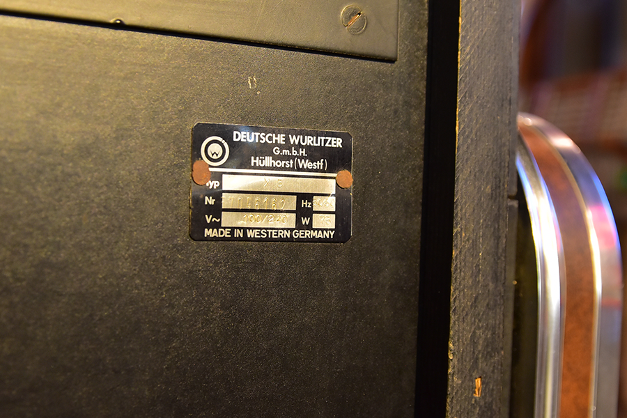 世界の四大メジャージュークボックスブランドの一つアメリカ「Wurlitzer」が1960年にドイツに設立した”Deutsche Wurlitzer GmbH”社にて、1977年にリリースされた「X5モデル」は、当時流行した3Dグラフィック技術を駆使したイルミネーションパネルが特徴のXシリーズ2作目となるモデルで、真空管アンプに比べ消費電力も小さく耐久性に優れ小型化されたトランジスタアンプを搭載し、高音・低音に分かれたHi-Fiスピーカーシステムにより迫力のアナログサウンドを奏でます。ショップやガレージ、リビングルーム等にて華やかなイルミネーションとジュークボックス独特の臨場感あふれるサウンドをお楽しみいただけます。